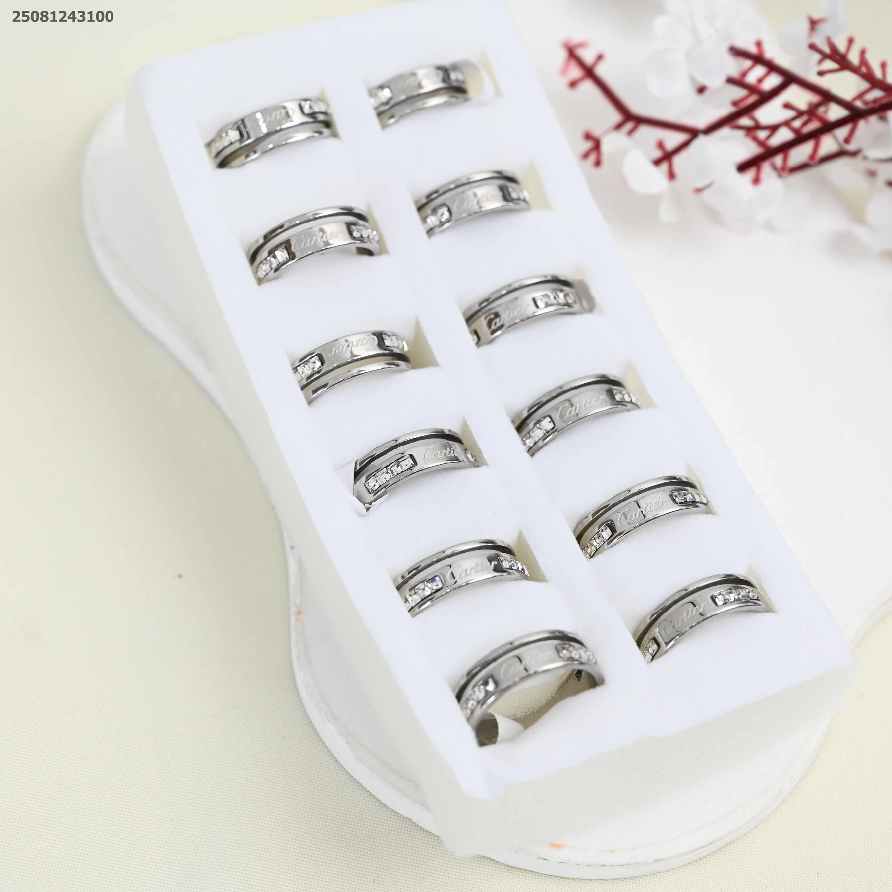 خاتم ماركة طبقتين مع احجار زركون في الوسط