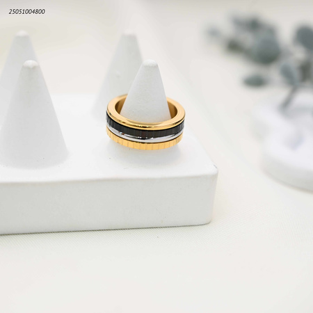 خاتم ثلاثي عصري بتصاميم وألوان ذهبية وفضية وسوداء.