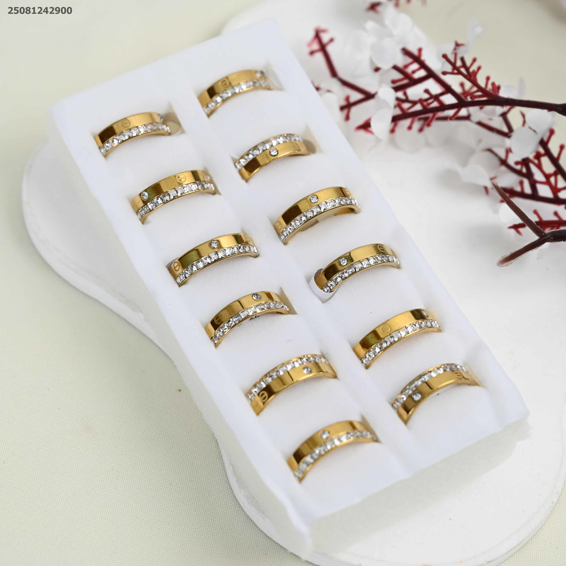 خاتم ماركة مع خط زركون من الأعلى