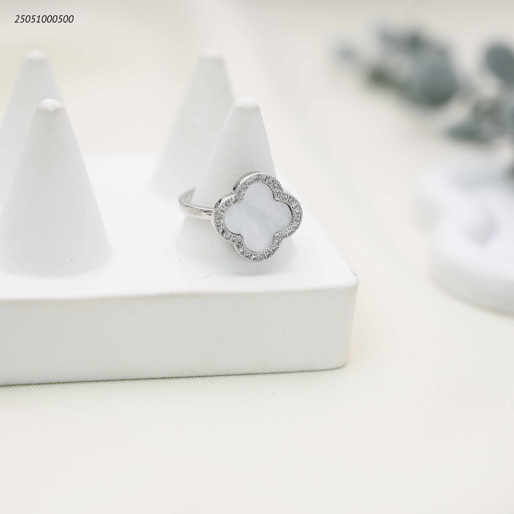 خاتم زهرة البرسيم بصدف ومزين بالزركون اللامع.