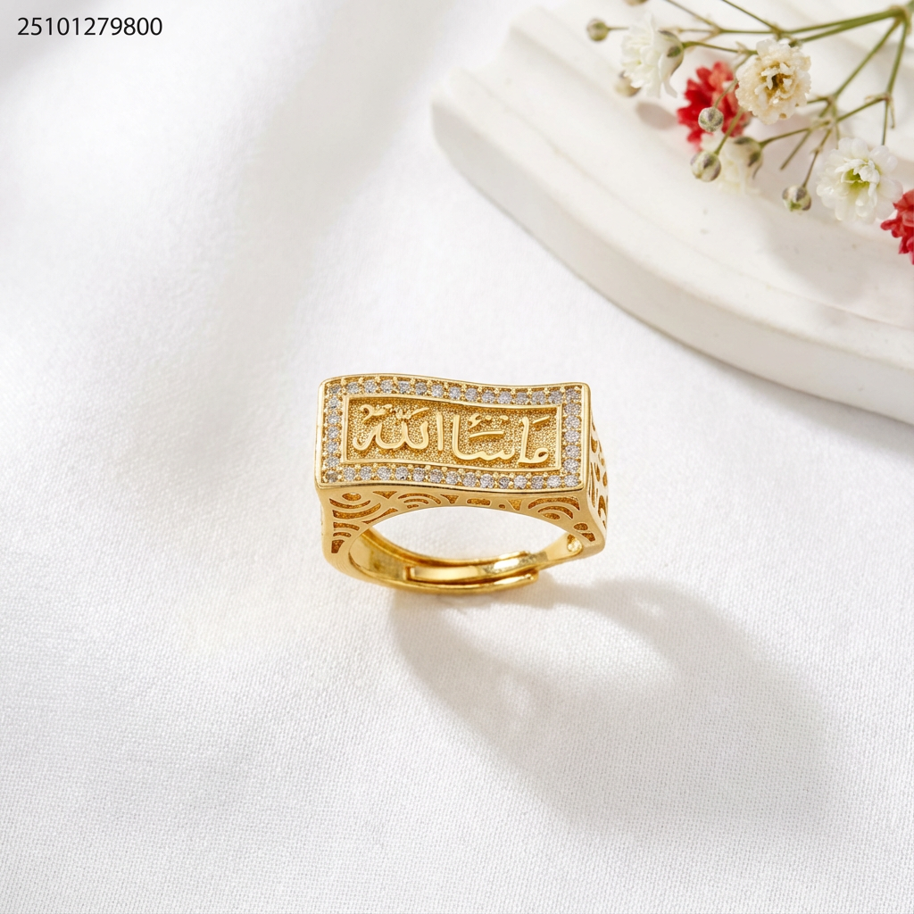 خاتم بشكل انسيابي مزين بخط عربي جميل