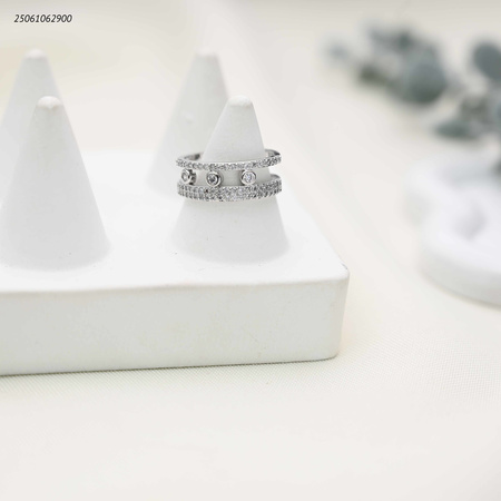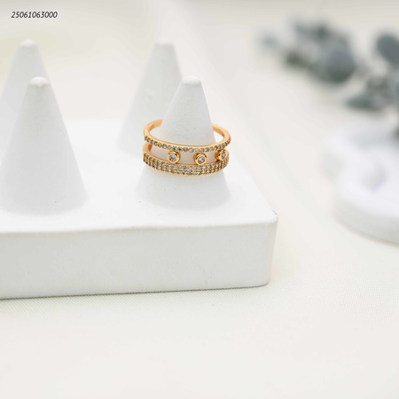 خاتم خطان بينهما ثلاث كرات صغيرة مع زركون