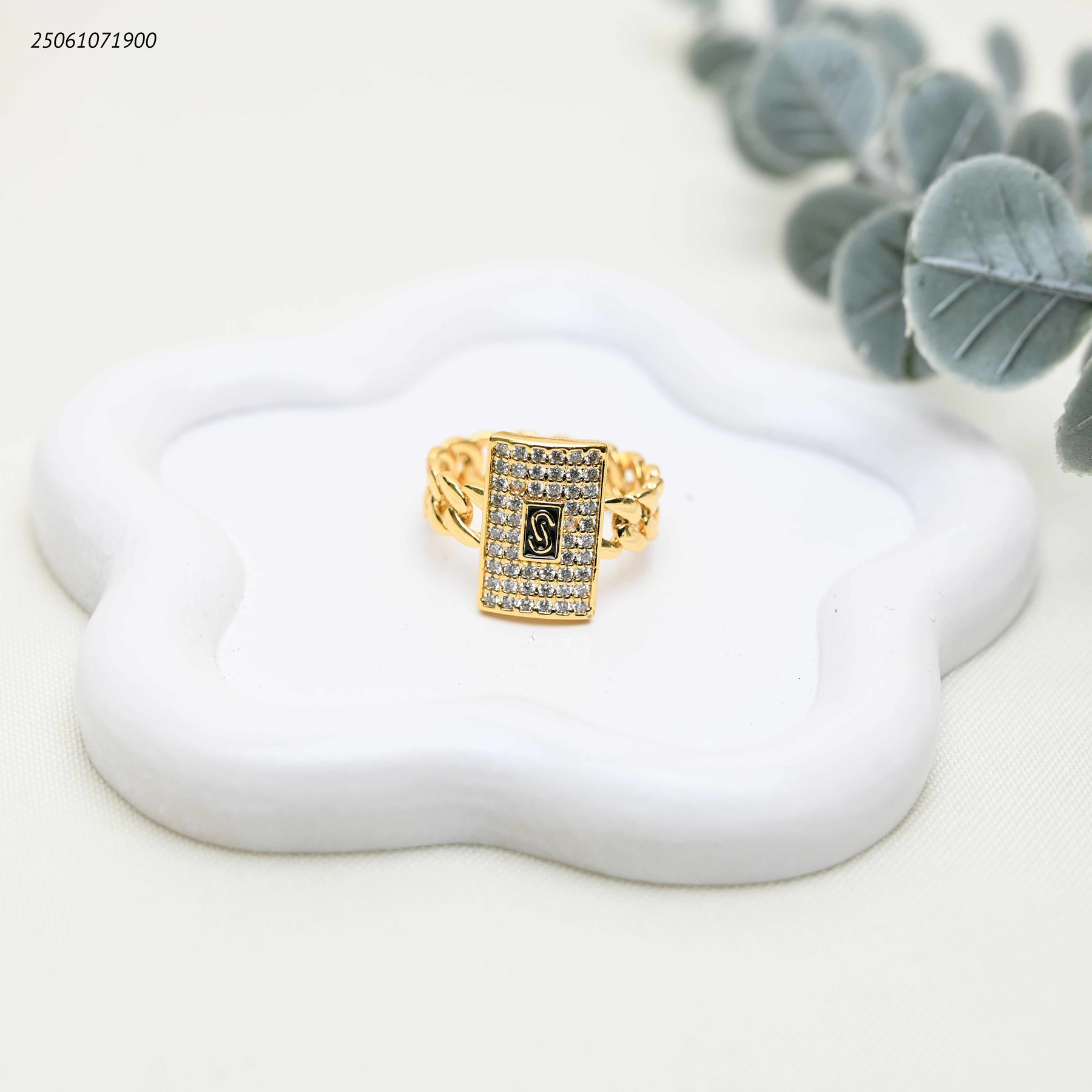 خاتم ماركة جنزير مع مستطيل زركون