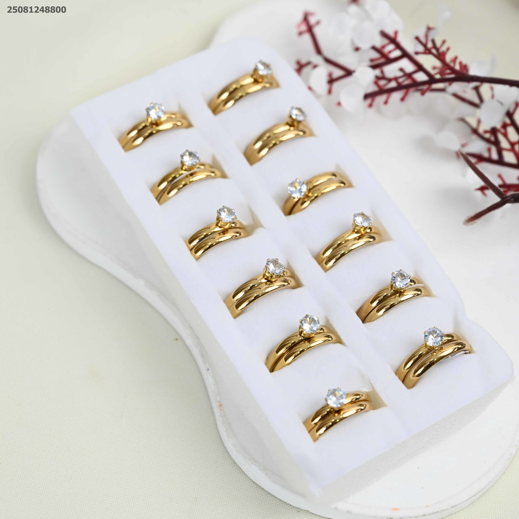 دبلة قطعتين مع حجر زركون دائري - توينز
