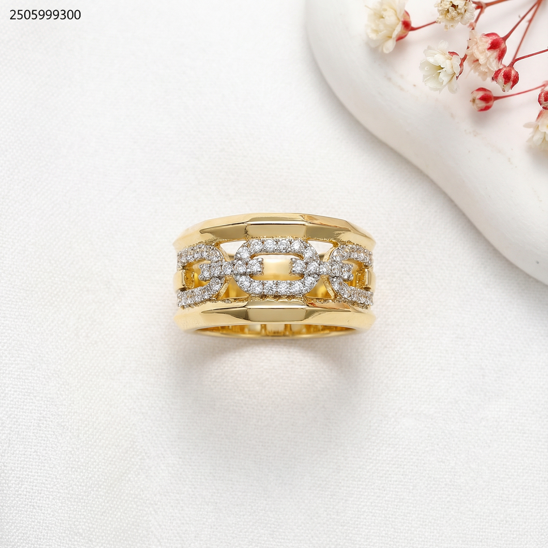 خاتم عريض بتصميم سلسلة مرصعة بالزركون الفاخر.