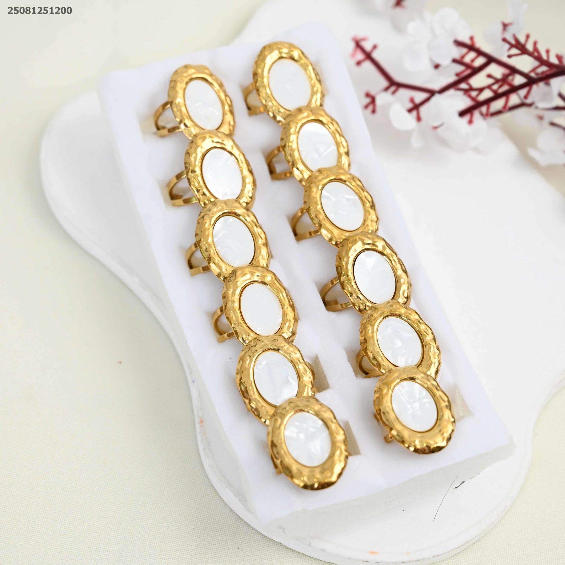 خاتم بيضاوي مع حجر ابيض