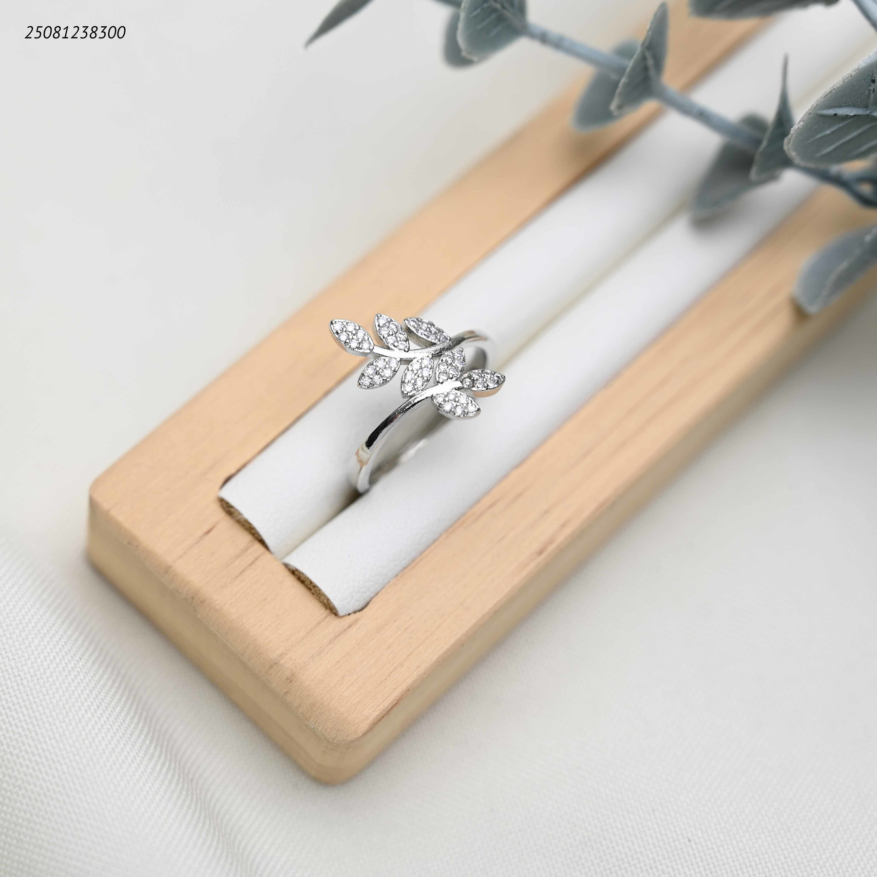 خاتم لف ع شكل اوراق شجر مع زركون