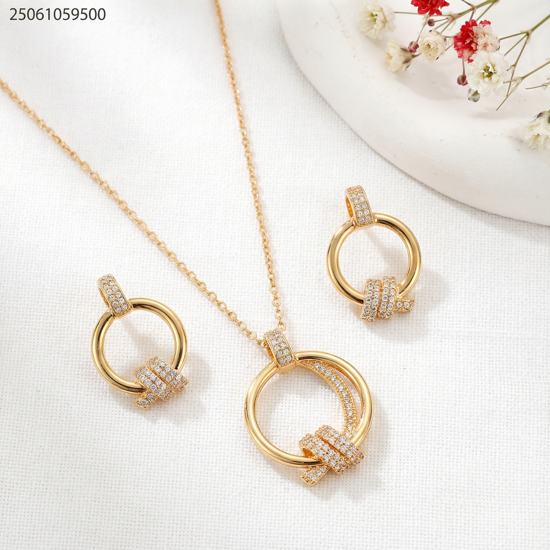 طقم سنسال و حلق شكل دائري و قطعة مبرومة بزركون
