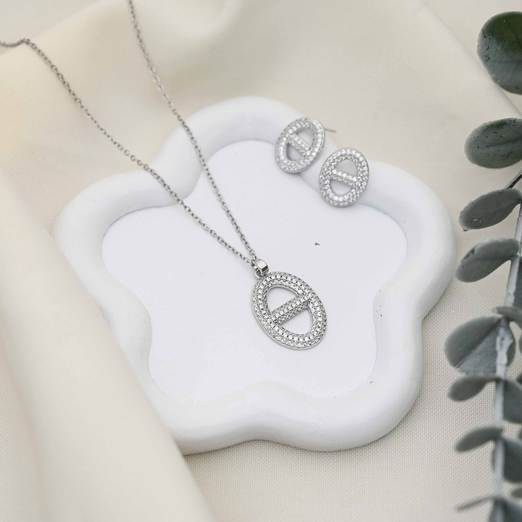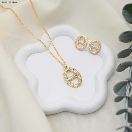طقم سنسال و حلق ماركة زركون شكل بيضاوي مع خط بالوسط