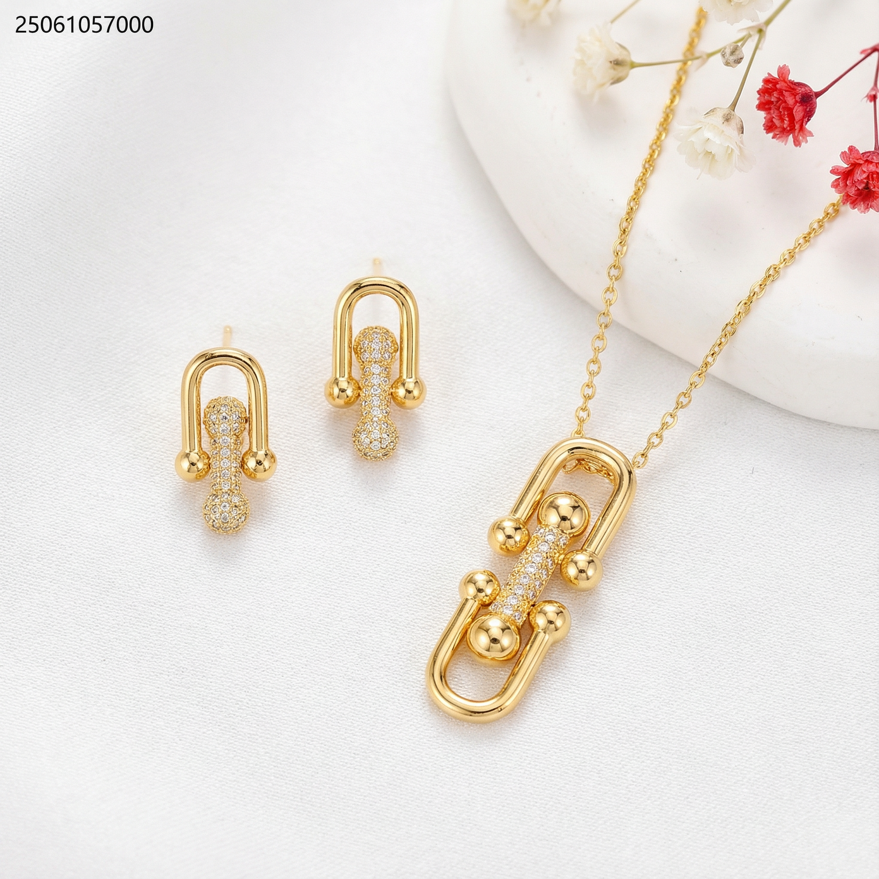 طقم سنسال و حلق بشكل حلقات متصلة مع زركون