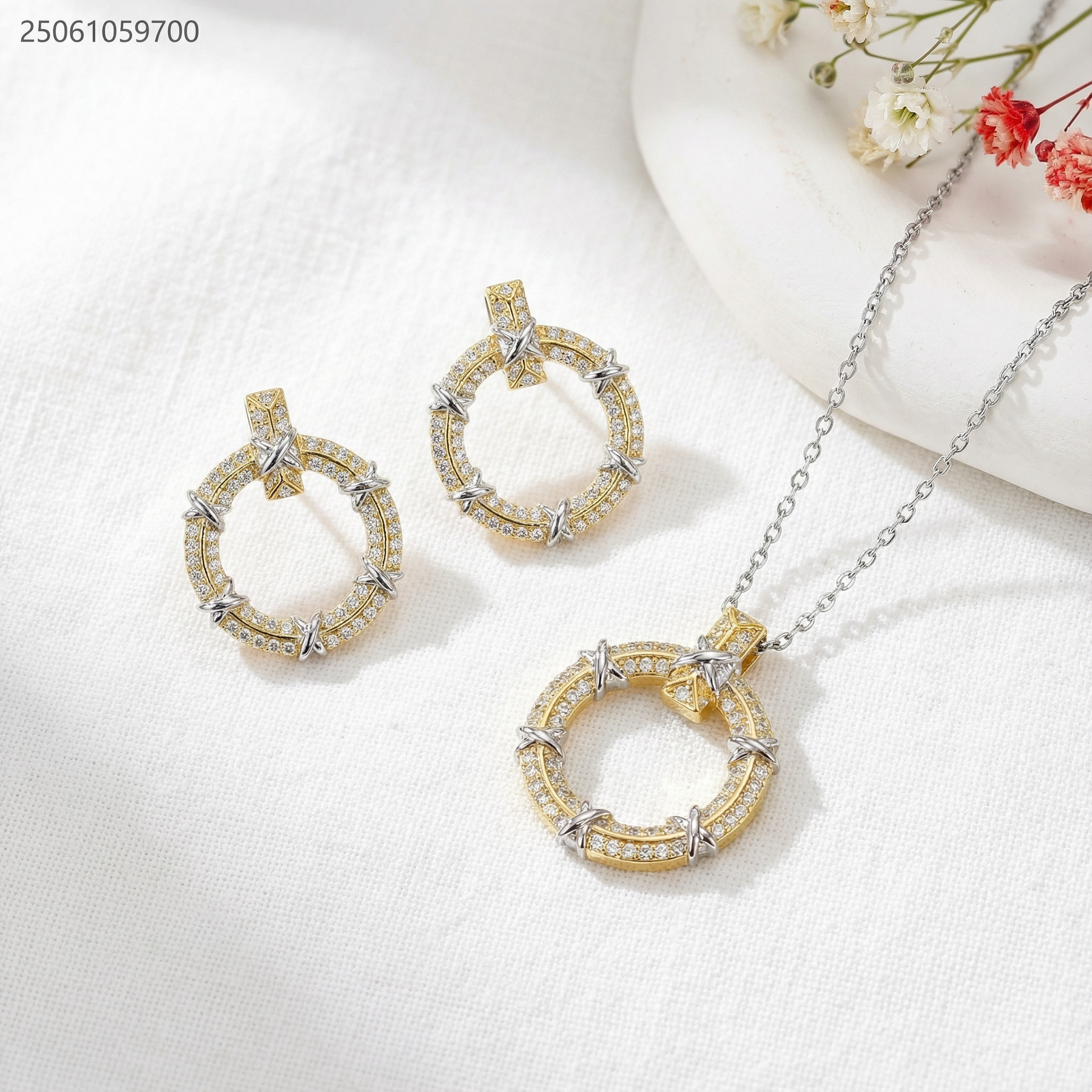 طقم سنسال و حلق شكل دائرة مفرغة مع زركون