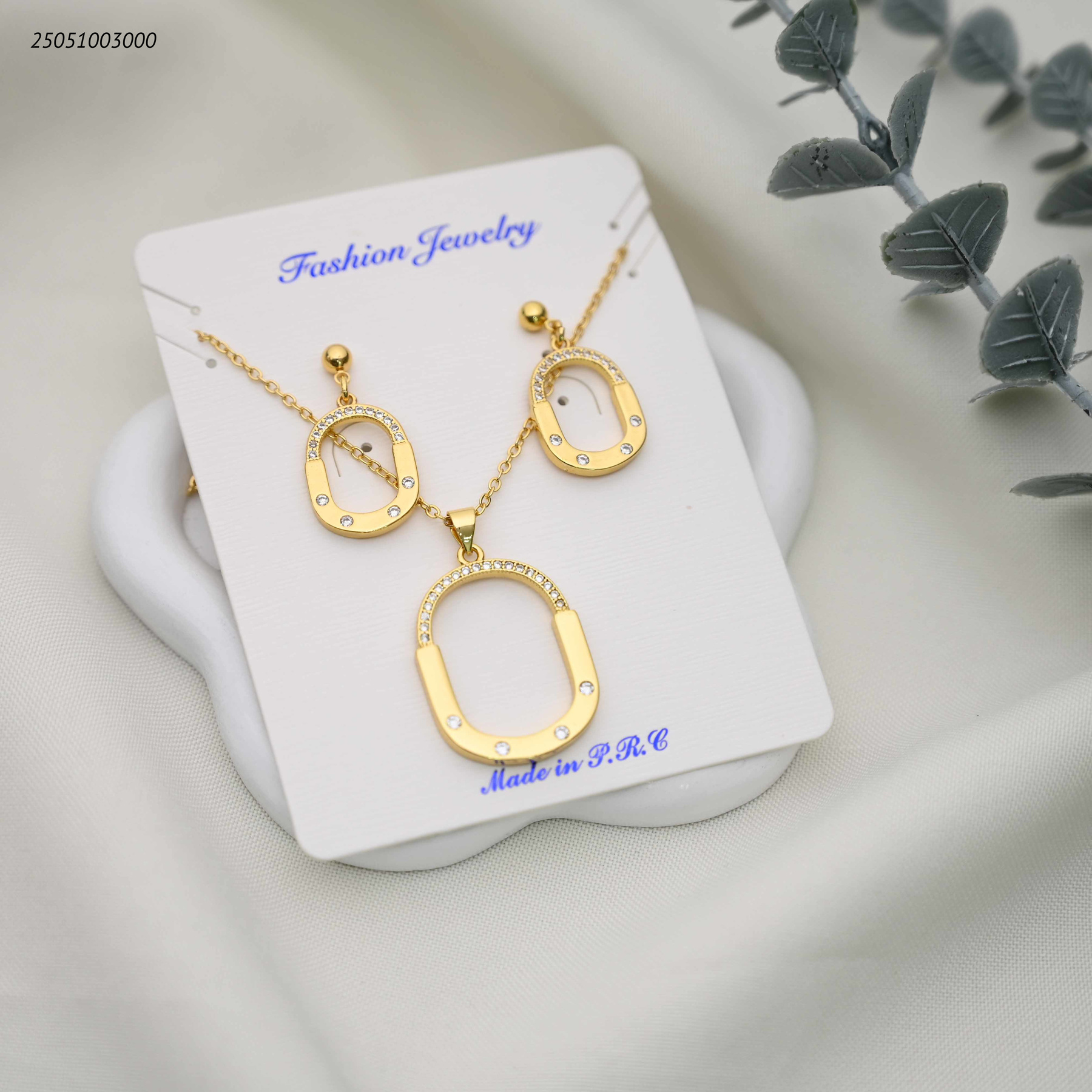 طقم مجوهرات بتصميم بيضاوي مرصع بالزركون اللامع.