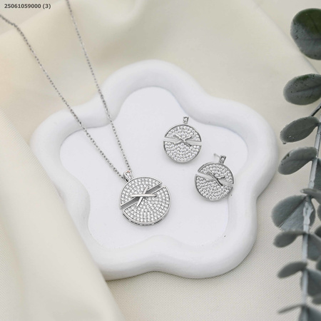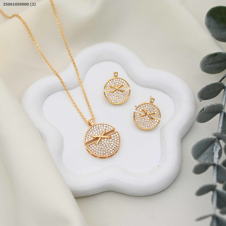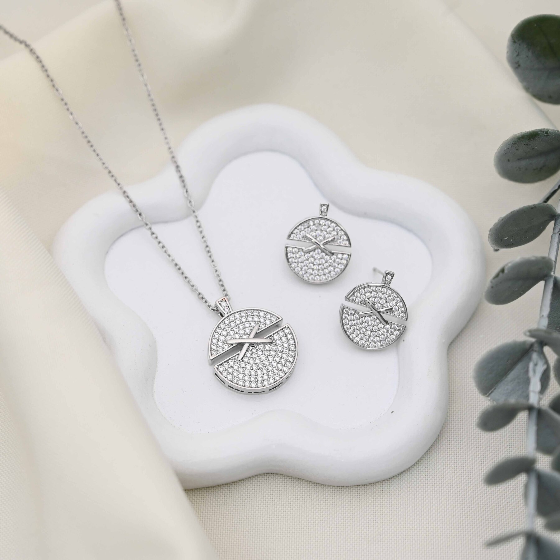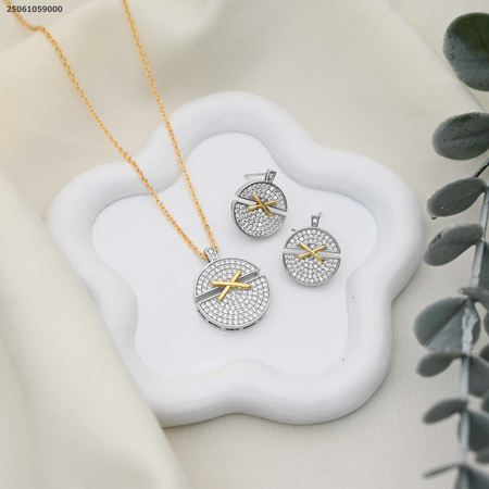 طقم سنسال و حلق شكل دائرة عليها اكس مع زركون