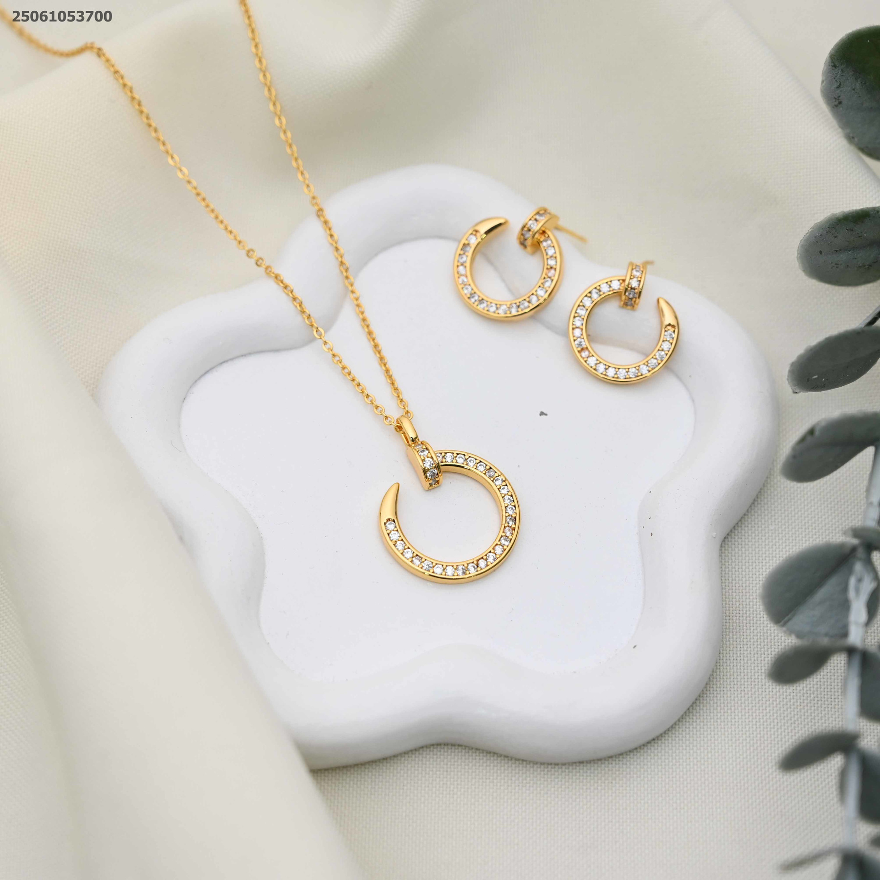 طقم سنسال و حلق ماركة شكل مسمار مع زركون
