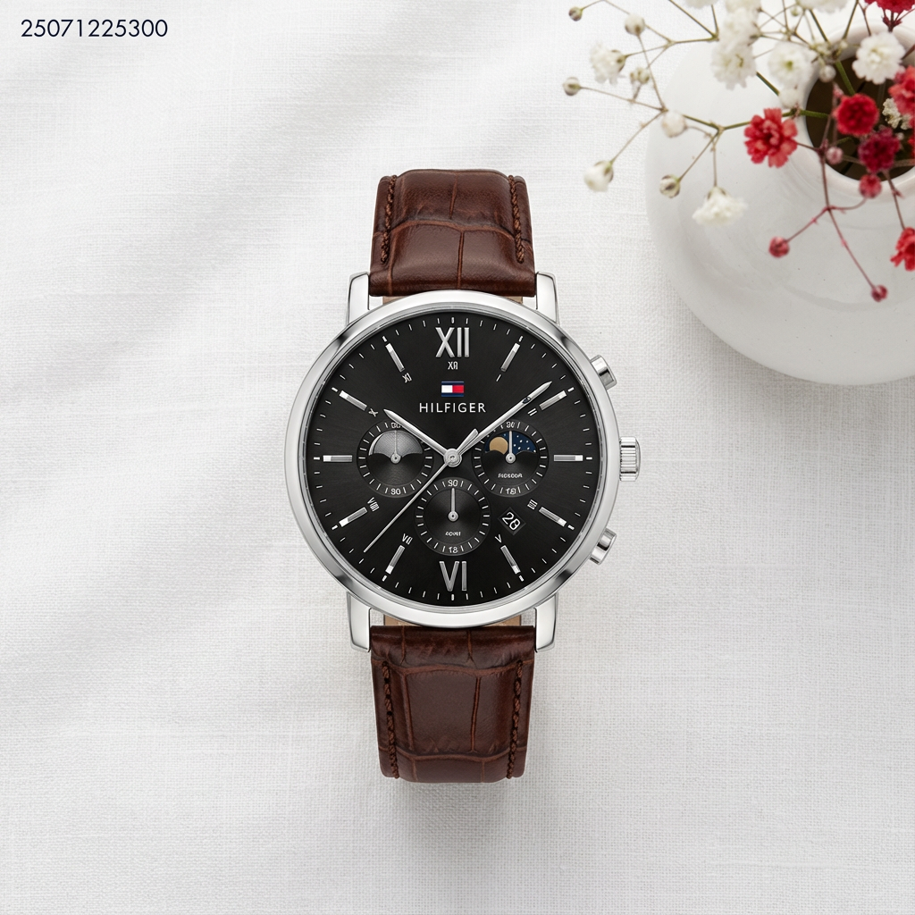 ساعة شكل دائري رجالي مع حزام جلد