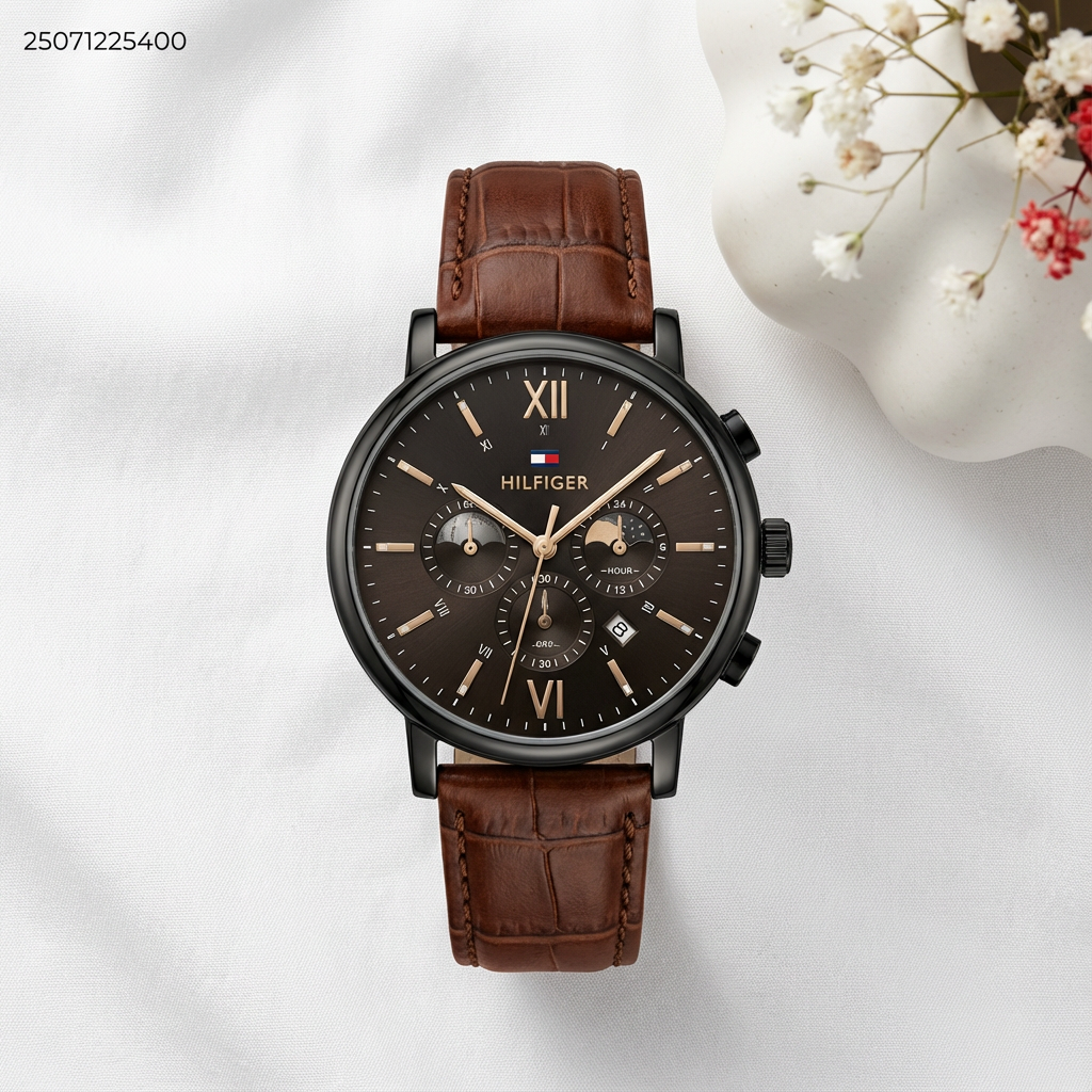 ساعة شكل دائري رجالي مع حزام جلد