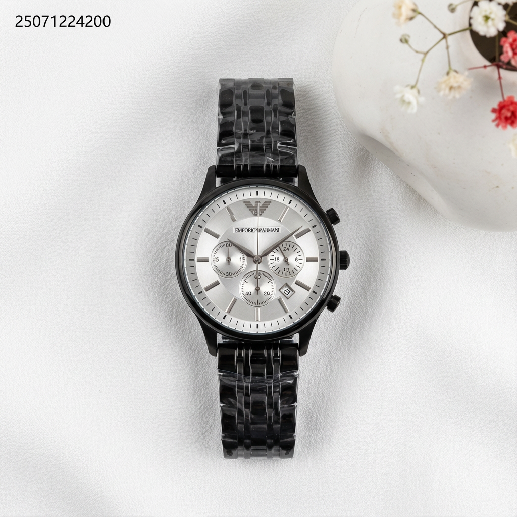 ساعه رجالي شكل دائرة مع حزام معدني